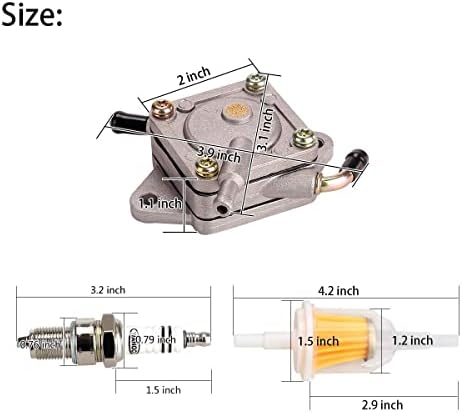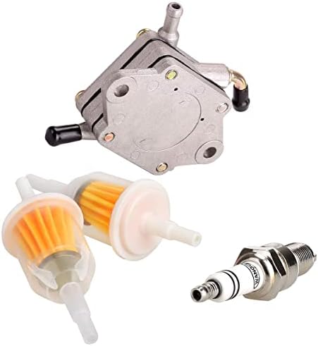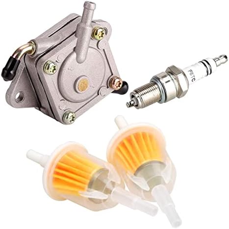 Package list: 1x fuel pump, 1x spark plug, 2x fuel filters(fits 1/4-inch and 5/16-inch fuel line)