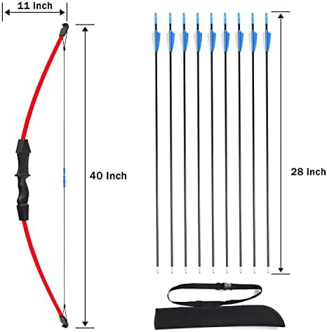 Archery Bow: length of the bow: 45″, draw length 22 – 24″ and draw weight 16-20 lb. Suitable for children aged 8 and above.