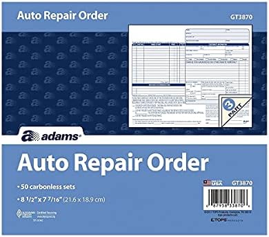Adams provides the tools to help businesses keep track of messages, finances, transactions, employees, taxes, and customers. Adams Business Forms were designed to help businesses the service industry itemize and organize customer information and material or labor costs associated with billing for repair and general work jobs. The Adams Auto Repair Order form provides space for recording all auto service jobs in detail. These 3-part carbonless forms follow a white, canary, white tag paper sequence to provide extra copies of all orders written. And you can customize your repair orders for a professional look, as each set has space at the top for a company stamp. Adams Auto Repair Orders measure 8½ x 7 inches, detached size, and each package contains 50 order sets. Whether it’s a multi-part form, notebooks, writing pads, record books, or any of the hundreds of items we offer, you can count on Adams products to help!