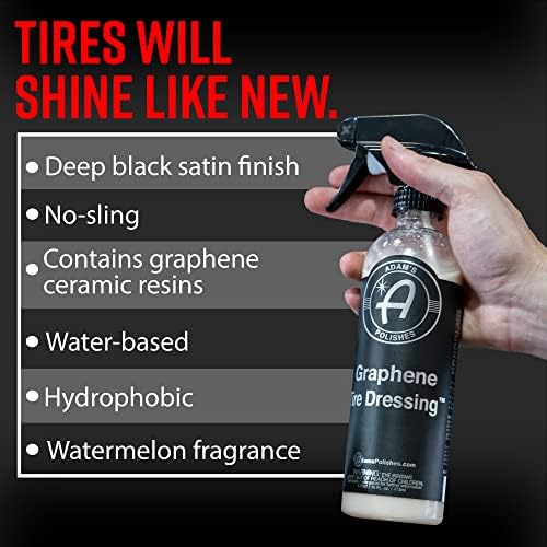 ✅ THE MOST ADVANCED TECHNOLOGY IN CAR CARE – Formulated to contain the same reduced graphene-oxide ceramic resins that are built into our other graphene products, such as Adam’s Graphene Detail Spray, allowing for a curing characteristic to be added to a traditional water-based, silicone tire dressing.