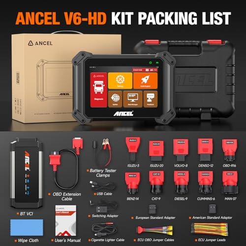 🔥🔥🔥【2024 ANCEL V6HD, TOP-NOTCH HEAVY DUTY TRUCK SCANNER】ANCEL V6HD is designed to diagnose 12-24V diesel trucks/ buses/ trailer/ commercial vehicles,V6HD diesel scanner offers more than 10 advantages: ✅ Advanced Bidirectional Control ✅ ECU Coding&Programming ✅ 3000+ Active Tests ✅ 40+ Service Resets ✅ Full OBD2 Function ✅ All System Diagnostic ✅ Graphing Live Data ✅ 10,000+ Car&150+Brand Coverage✅ CAN FD & DoIP✅ Wireless Operation✅ Data Print/Feedback/Report/Email ✅ 2-YEAR Free Update. 🔥Hardware of V6HD is equally cutting-edge:✅ 8000 mAh✅ 8-Inch Tablet✅ 4-core 2.0Ghz(quicker operation)✅ 2G RAM/32G ROM (Expandable)✅ Android 10.0✅ Bluetooth 5.0 & Wifi✅ 13+ Languages Etc