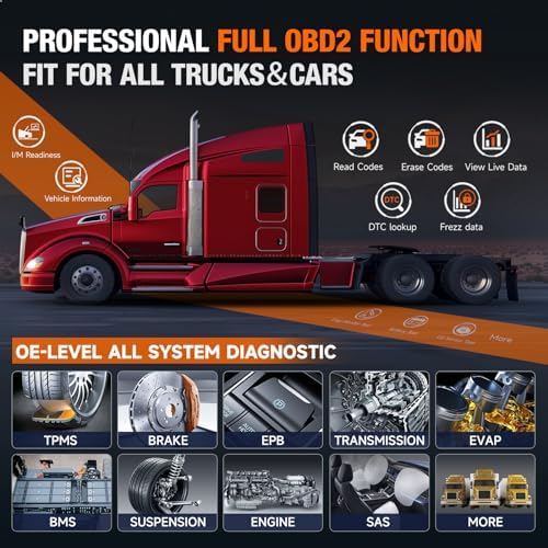 🚛【 40+ RESET SERVICES, GOES WELL BEYOND BASIC FUNCTIONS】2024 newest top truck scanner diagnostic tool, comes with 40+ special services (such as Oil Reset, Brake Reset, ABS Bleeding, Injector Reset, SAS Reset, TPMS Reset, BMS Reset and more depending on make & model! Moreover,V6HD will continue to keep updating to support more newer modes from coming year. 📢NOTE: Most of main features available for diesel vehicles, with less support for petrol vehicles,please send VIN number(s) of the vehicle(s) to us, if you are not sure whether V6HD is compatible with your vehicle or not.