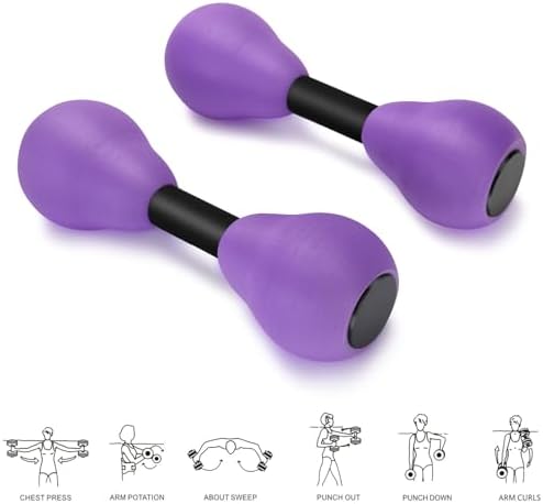 Aquatic Dumbells,2Pcs Foam Water Weights Aerobic Exercise Fitness Equipment Dumbbells, Pool Resistance Swimming Training for Adults/Kids/Men/Women Weight Loss, Beginner Swimming Training, Purple