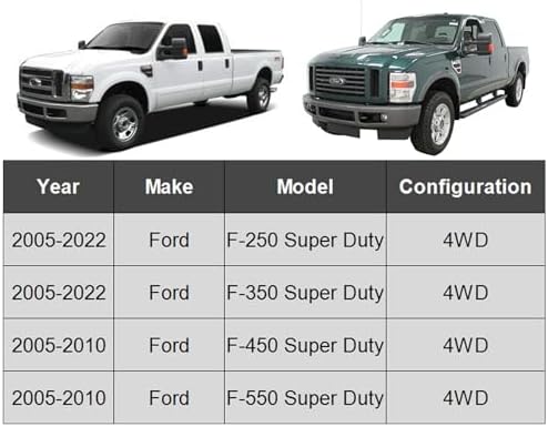 Perfect Fitment: Direct replacement for 2005-2022 Ford F-250 Super Duty, 2005-2022 Ford F-350 Super Duty 2005-2010 Ford F-450 F-550 Super Duty Excludes Extended Axle. Please check the Amazon Confirmed Fit and product description for accurate information.