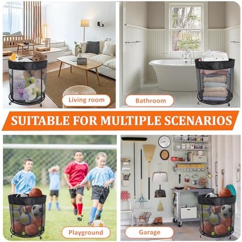 【An ideal ball storage for outdoor/indoor use】: Ideal for use in garages, basements, living rooms, playground, homeschools, daycares, preschools and other areas where space is limited. Easy to move, can be placed in the corner.