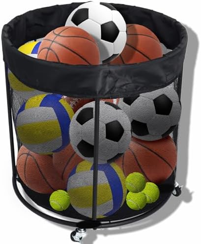 【Rolling Ball Cart】: Efficiently organize your sports equipment with this versatile ball organizer for garage, capable of holding basketballs, footballs, soccer balls, volleyball, baseball, and more with ease.