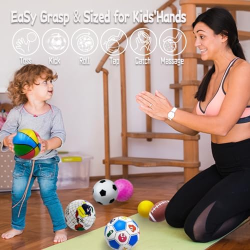 FUN SPORTS BALL TOY: Our kids ball is soft and easy to hold and throw. Bright colors, different pattern balls, children can play tumbling, counting colors, games or put them in the ball pit. Attract children’s attention and cultivate color recognition and hand and foot coordination.