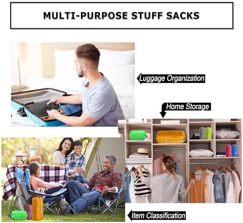 Multi-Purpose & Multi-Ocassion: These lightweight stuff sacks are ideal for backpacking, camping, boating, hiking, swimming traveling and other outdoor activities. These stuff bags are best design for shoes, towels, clothes, , jacket, food and small pieces of camping gear.