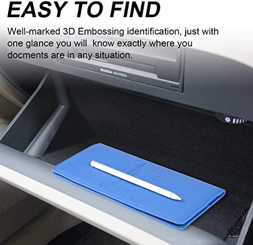Excellent 3D Embossing: auto car document holder is made of high grade quality PU leather & durable vinyl PVC, which is with the best sewing and crafted. Beautiful cover of 3D embossing, provides a comfortable soft touch feeling and professional look.