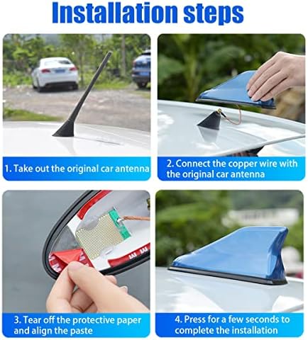 【Easy to Install】: Take out the original car antenna, connect the copper wire of the shark fin antenna with the original car antenna, tear off the adhesive protective paper, stick it in position, and press for a few seconds to complete the installation. No need to drill, no damage to the car. Clean and dry the car before installation, so that the adhesion is maximized and it does not fall off easily.