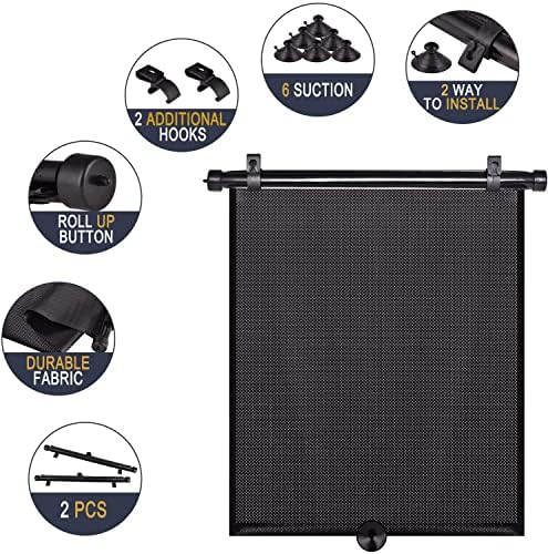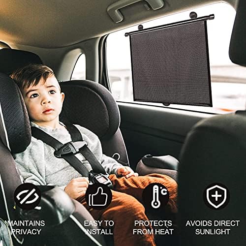 Car Roller Sunshade, Retractable Car Window Sunshade for Side-Window – Blocks 98% of UV Rays, Sun Glare and HeatCar Shade Roller Size: