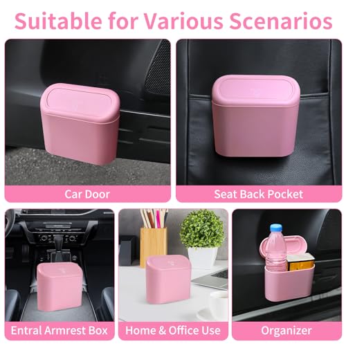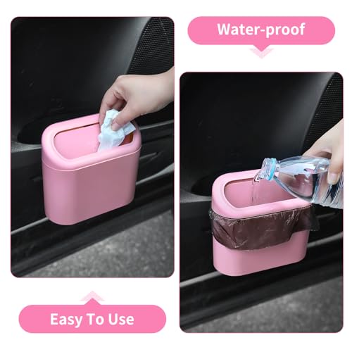 Car Trash Can Bin with Lid and Trash Bags Small Car Garbage Can Leakproof Mini Car Accessories Trash Bin Car Dustbin Organizer Container for Car Office Home pink