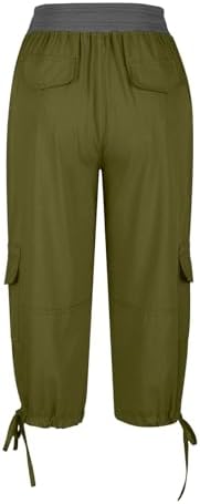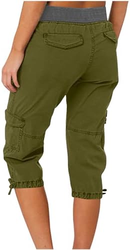 Cargo Capris for Women with Pockets High Rise Outdoor Hiking Travel Cropped Pants 2024 Summer Drawstring Trousers