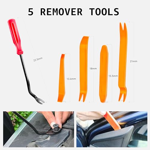 Easy Access Tools: Includes 5 car plastic fastener remover that slide under tight clips for quick and easy removal of stubborn fasteners and upholstery clips without causing damage to them.