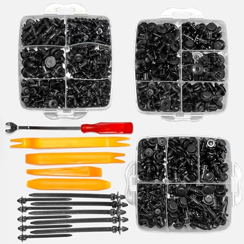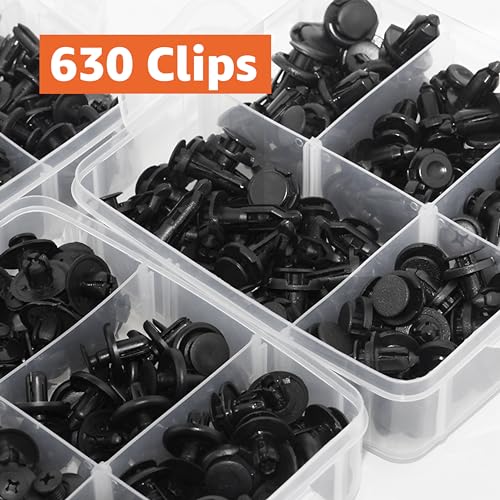 Push pins for cars kit includes: 630 pieces of retainer clips, 5 automotive push fasteners removers, 10 reusable cable ties. Allows you to repair your vehicle accessories whenever you choose.