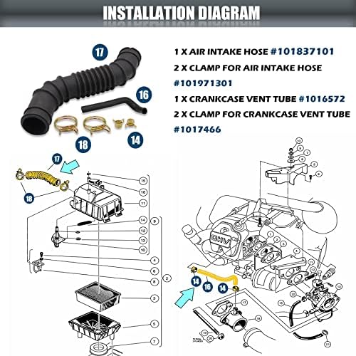 🛺[Easy Installion]: Direct clamp-on design, with mounting clamps for easy installation. Easy Plug and Play Design and durable. Package Content: 1 x Air Intake Hose; 2 x Clamps for Air Intake Hose; 1 x Crankcase Vent Tube; 2 x Clamps for Crankcase Vent Tube.
