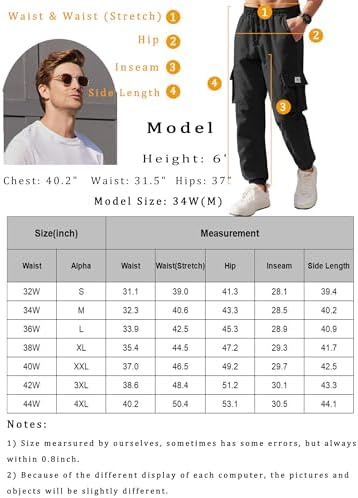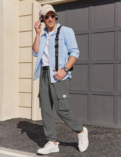 COOFANDY Mens Casual Joggers Pants Stretch Waist Drawstring Cargo Pants Tapered Sweatpants with Pockets