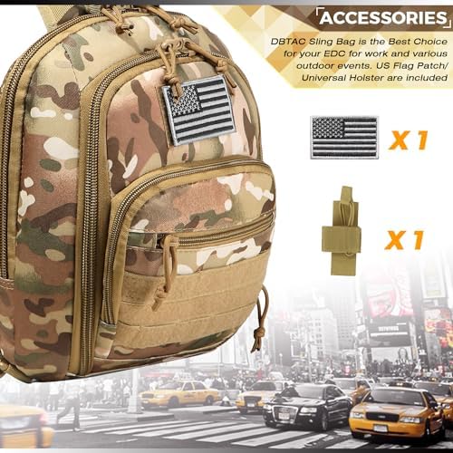 ✔ WHAT YOU‘LL GET – DBTAC Tactical Sling Bag for Every Day Carry features 4x compartments (main pocket: L10”xW12“xH1.5“). Extra accessories: #1- 1x Embroidered USA flag patch (3.1″x2.2″), #2- 1x Universal Holster with Hook Strap that fits most popular pistol sizes (designed to store your pistol in tactical bag backpack with loop panel)
