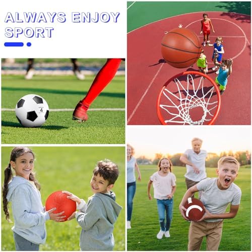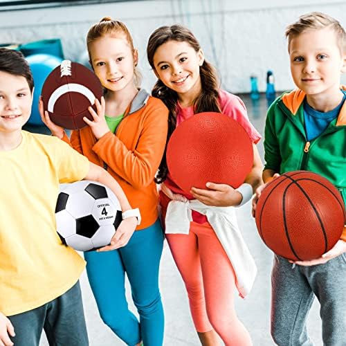 Official Size: the Size 5 basketball is about 27.5 inches in perimeter, the Size 4 soccer is about 7.87 inches/ 20 cm and the Size 6 football is about 10 inches in length and 18 inches in its widest circumference, the playground ball is about 8.66 inches/ 22 cm in diameter, suitable size for kids, youth training, games and competitions