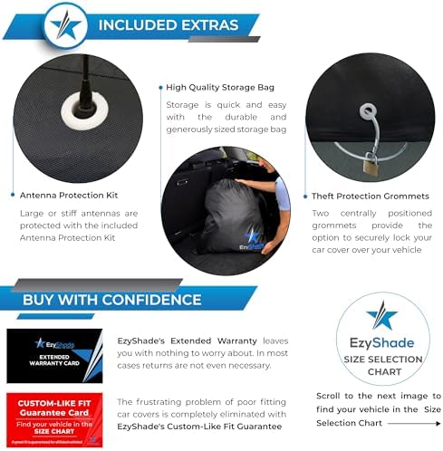 EXTENDED WARRANTY. VIP SERVICE. EzyShade customers have long benefited from generous product warranties and industry-leading customer service. All EzyShade products with a Vehicle Size Chart (car covers included) even come with a Great Fit Guarantee!