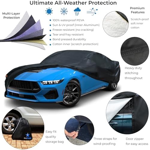 EzyShade 10-Layer Waterproof Sports Car Cover. See Vehicle Size-Chart for Accurate Fit. All Weather Full Outdoor Covers. Corvette Mustang Trans Am. Sun Snow Rain. Black, Size C4 (See Size Chart)