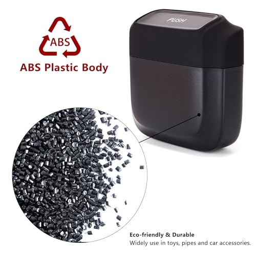 EASY TO CLEAN – Car trash can with lid is made of ABS plastic, which can keep the trash can good service performance and is not easy to deform. With a big open flip cover so that they can be easily be empty and cleaned all the way. You can easily clean out this mini car garbage bin with soap and water.