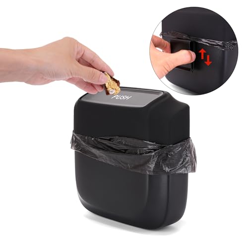 LEAK-PROOF – The cover of the car trash can has a spring-loaded lid: push down on it to insert your trash, and it flips back up to the closed position to keep your car garbage from spilling out. Car trash bin can effectively seal in any foul odor and keep the car trash out of sight. This car garbage can keeps your car tidy and clean.