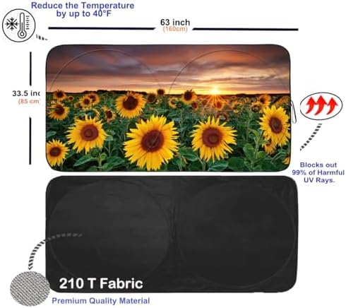 Size- Car windshield sun shade is L 63″ x 33.5″ W. It is best for SUV , Truck & Van. Please refer to images 3&4 before purchasing to get the best size for your car.