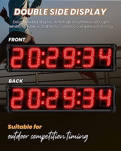 【Applications】This item is double side LED clock counter and you can view it at both side. It can view clearly under sunlight because it uses ultra bright high quality LED. Suitable for outdoor racing, marathon, competition.