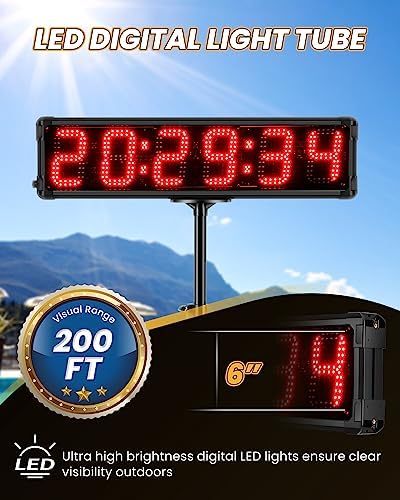 Hanchen 6” Digits LED Race Timing Clock Double Sided LED Race Timer Waterproof LED Countdown Clock for Outdoor Sports Horse Running Events CE(Red)