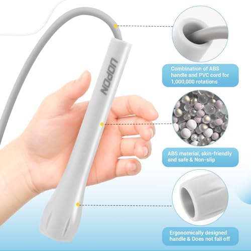 [Ergonomically Designed Handle] Our workout skipping rope handles are made of ABS material, sturdy and non-slip, non-toxic and odorless. Overall cylindrical design, ergonomic, head light and tail heavy, throwing rope more powerful. Handle teardrop shaped design, fits better in the palm of your hand for a comfortable grip. Gives you a smooth and easy jumping experience, making every workout comfortable and safe!