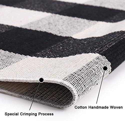 👍【BEST QUALITY】:This stylish Buffalo plaid rug is Made to the highest standards of high-quality cotton,great water absorption, resistant to outdoor elements,no fade,good breathability same time large plaid rug is thicker and heavier than other commonly available Buffalo plaid rugs.
