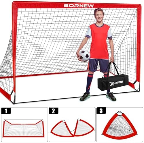⚽【Portable & Folding Soccer Goal】With a carry bag for our toddler soccer goal. You can get the soccer nets in seconds by 2 steps: put the poles into the cloth cover, and connect them with L-shaped connectors. And can also be folded into an isosceles triangle quickly without removing the rods from the soccer net itself, allowing for a quick setup, easy fold, throw over your shoulder and go!