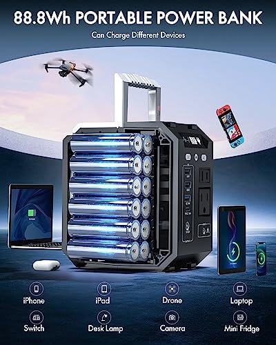 🔋DAILY PORTABLE POWER: The MARBERO solar power station equipped with 88Wh (24,000mAh) capacity to meet your daily needs. When fully charged, it will charge the iPhone 15 for 5 times and the camera for 17 hours, so enjoy using your phone and taking pictures while traveling without worrying about the battery running out! In addition, this camping power bank will power a car refrigerator for 1.5 hours and a mini projector for 5.5 hours, which greatly enhances the happiness of traveling.