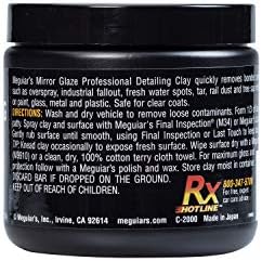 Meguiar’s C2000 Mirror Glaze Professional Detailing Clay is amazing for safely removing bonded surface contaminants from your vehicle. The clay bar is equally effective on paint, glass, metal and plastic, and quickly and easily removes contaminants such as paint overspray, industrial fallout, fresh water spots, road tar, bug debris and tree sap mist. Simply lubricate surface with M34 Mirror Glaze Final Inspection (body shop safe) or with D155 Last Touch Spray Detailer diluted 1:1, then gently rub until surface is mirror smooth.