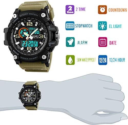 Men’s Military Digital Watch Sports Outdoor Waterproof Watches with Date Multi Function Tactics LED Alarm Stopwatch Analog Watches