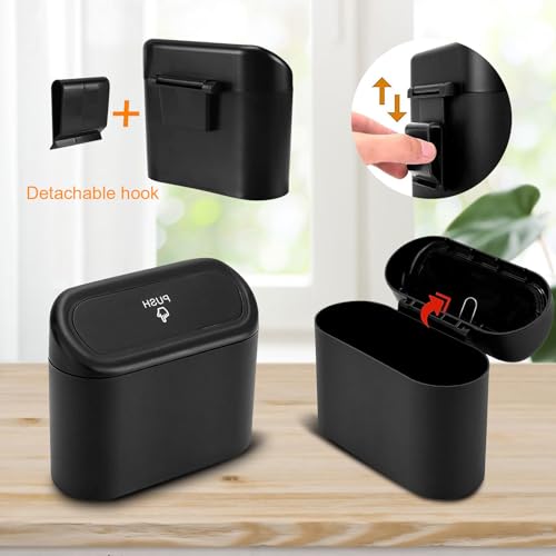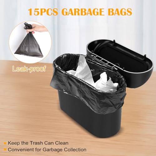 【Multi-function】This tiny trash bin also can be used as a storage box for umbrella, drink bottle and other small objects or be used as an ashtray, cup holder or coins holder. Besides it can be used in office, living room, kitchen, bedroom, dining room. 【Universal Fit】Our small trash can with perfect size fits for every type of vehicle, including cars, trucks, minivans, SUVs, RVs, campers, boats, semis, buses, cabs/taxis, and more! 【Compact Size, Large Capacity, Space Less,】Tiny but functional car garbage bin will maintain your vehicle clean and organized yet do not occupy too much space of the car. 【Easy Installation】 The auto trash bin back with high-strength hook which make it easy to install. Can be hung on the edge of the door and the back seat, or placed in the central console. 【Waterproof & Leak-proof:】Mini Trash Can for Car is made of durable waterproof plastic which provide maximum strength, durability, and longevity. Handy bounce cover design is convenience for you to put garbage into it effortlessly and ensure the trash can sealed well to avoid unpleasant odors from escaping into the car.