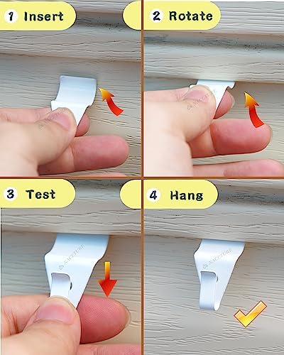 ๐Ÿ”จNO HOLES or TOOLS Required: To install simply roll the vinyl siding cable hooks into your horizontal vinyl siding. Itโ€™s that easy, aluminum siding hooks for hanging.