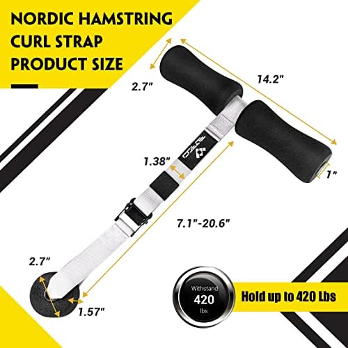 [New Upgrade Nordic Hamstring Curl] Our Nordic Curl is made of industrial grade stainless steel with a length of 14.2 inches. Our foam is 1inch thick and 5.9 inches long and is ergonomically designed to make your feet more comfortable when using them. Our Nordic curl strap adjustment length of 7.1″ – 20.6″, both adults and children, can meet the needs of daily exercise. Our door anchors are made of high-quality 2.7 inch diameter foam that securely attaches to the bottom of the door frame.