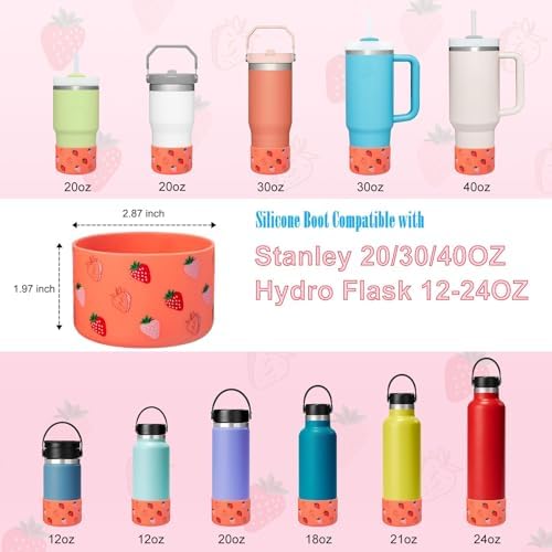 [Special Design] Cute silicone boot designed for Stanley cups, with vivid color and nice pattern, greatly upgrade your STANLEY cup. Bottom boot in original design, making your Stanley cup more attractive. 3D effect pattern gives a nice look when placing protective sleeve covers onto tumblers and hydro water bottles. Semi transparent effect reveals the base color of Stanley cup, accessories to upgrade your Stanley cup to be unique and outstanding.