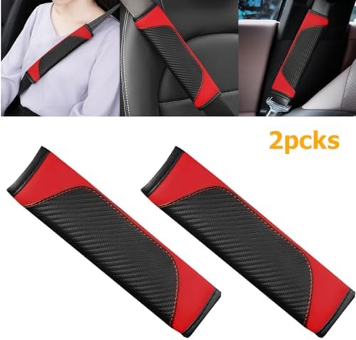 Osilly 2PCS Car Seat Belt Cover, Carbon Fiber Seatbelt Shoulder Protection, Soft Car Seat Belt Strap Cushion Protect Your Neck and Shoulder, Car Accessories Seat Belt Pad for Car Truck (Red)