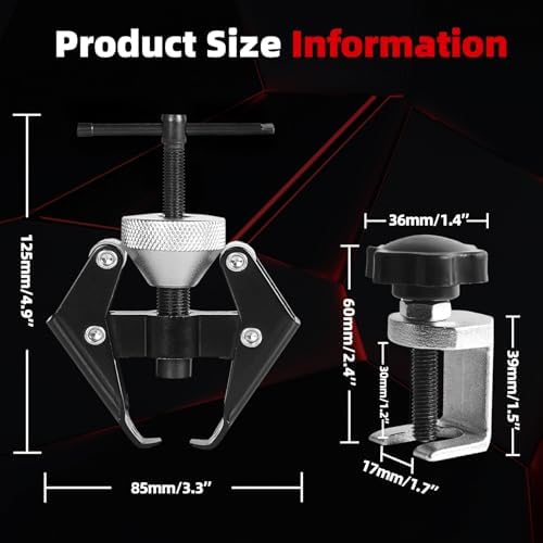 【Great Material】: Made of 45 # carbon steel more durable, wiper arm and battery terminal bearing disassembly tool puller tool jaw opening: 1/16″ – 1-1/16″ (6-28mm); Outer diameter:1-7/8″ (48mm), wiper arm disassembly tool collar size: approximately 17mm