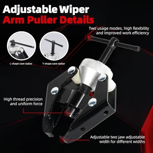 【Application】: OTUAYAUTO arm bearing remover puller repair tool kits Include: 1 x wiper arm puller tool, 1 x windshield wiper arm removal tool. Wiper arm puller remove tool designed for dual-purpose can remove bolted-on windshield wiper arms that fit over a tapered spline.