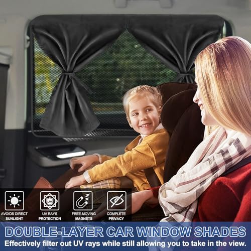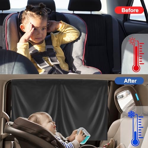 🚗【Innovative Double-layer Design】With double-layer car sun shades, you can create a private space for resting or breastfeeding. With the straps you can also fold the opaque car sun shades without blocking your view.