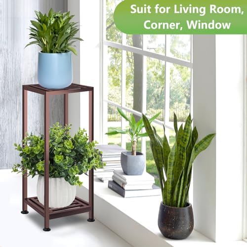 Plant Stand Indoor Outdoor, Heavy Duty Wrought Iron Pedestal Stands Metal Plant Shelf Decorative Flower Stand for Patio Garden Deck Living Room, Brown