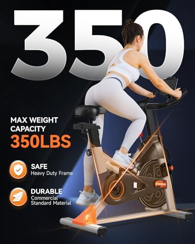 4 【Safe and Convenient Stationary Bike】 Stable frame construction with durable steel for 350 lbs weight capacity. Press the resistance knob to stop the flywheel immediately. Bottle holder for quick hydration, 4’x 2’ footprint that smaller than your average yoga mat, transport wheels for ease of moving the stationary bike