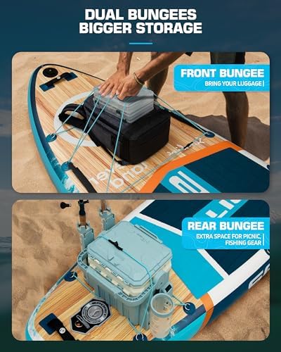 【Easy inflation & attractive design】SPORIT inflatable paddle board features convenient inflation and deflation capabilities. Equipped with a dual-action pump and high-end valve, it allows for effortless inflation and deflation. You can have it ready in just a few minutes, making it convenient and quick. Additionally, this paddle board has a stylish and unique design that adds charm and captures attention during your water adventures.