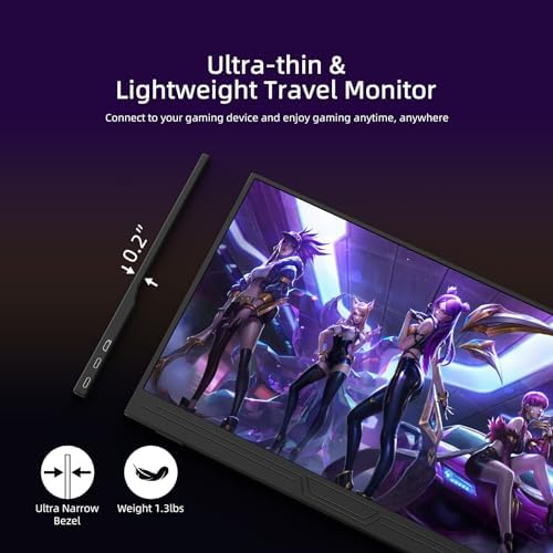 144hz smooth gaming expenrice: Compared with 60Hz or 120Hz portable laptop monitor, this portable monitor 144hz displays more frames per second, eliminates lag and motion blur and you can find enemy faster for an exciting gaming experience.