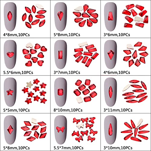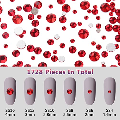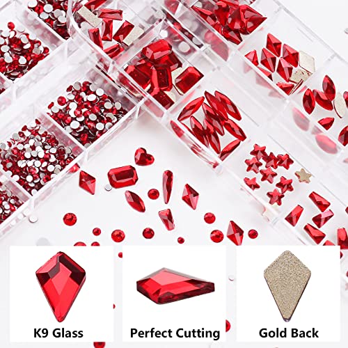 1848 Pieces Nail Rhinestones, Glass Flatback Crystal Rhinestones for Nail Art, Multi Shapes Iridescent Nail Gems Stones for DIY Crafts (120pcs Shaped Crystals + 1728pcs Round Rhinestones, Light Siam)