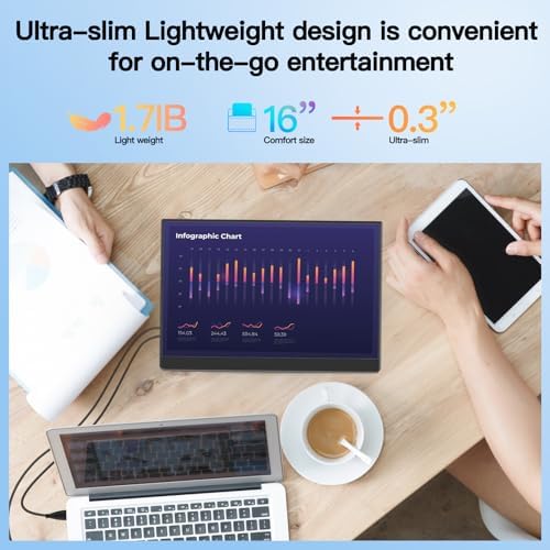 2.5K Portable Monitor,16″ 2560×1600 QHD IPS Computer Monitor USB-C, HDMI Gaming Monitor,Travel Monitor External Monitor for Laptop Portable,Original bag&Speakers,HDR Plug&Play,for PC,Mac,Phone,Ps5